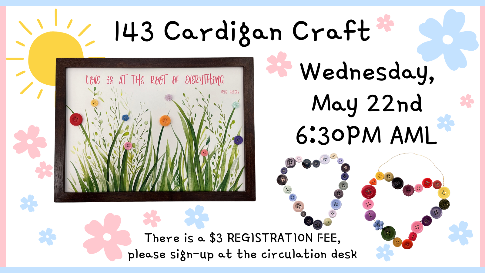 Our Assistant Director Kathy will show how to turn cardigan buttons into beautiful art pieces to help spread some love and joy on that day and beyond.