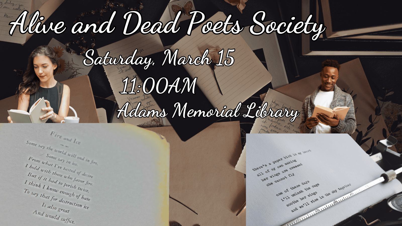A chance for poetry lovers to read and hear poetry. Come share some of your favorite poems from past and present poets or even share some you’ve written yourself!