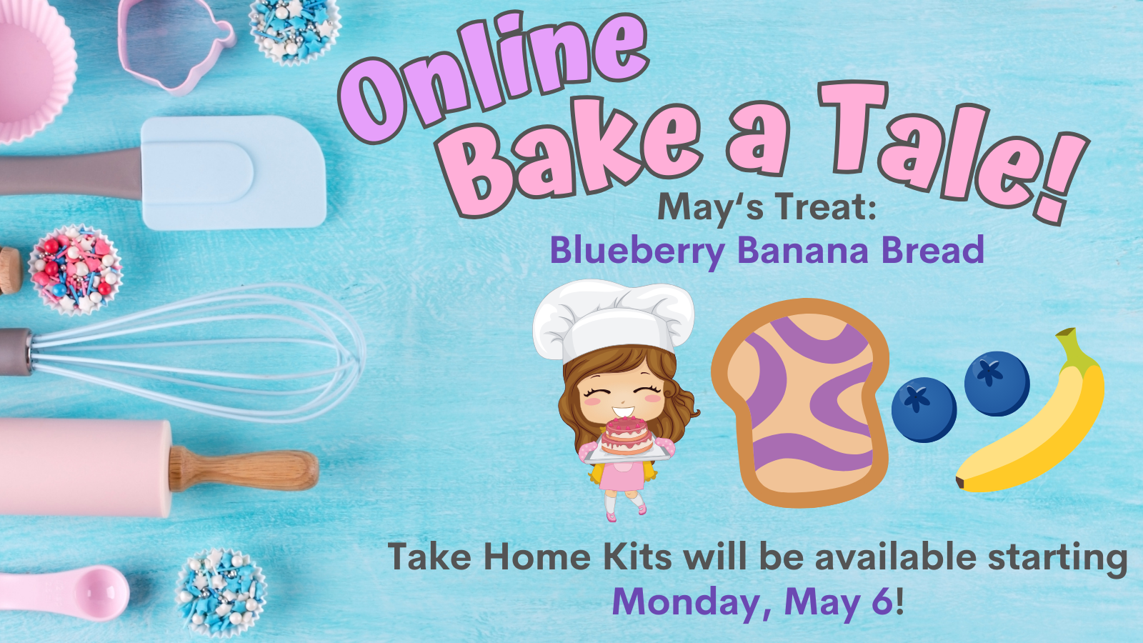 Families can pick up a free recipe and activity kit in the Children’s Room or via curbside pickup, beginning Monday, May 6, while supplies last.