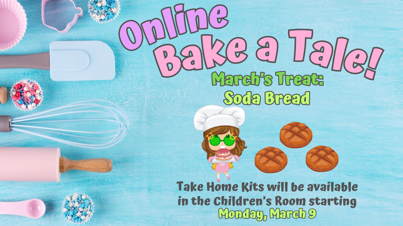 You can pick up your free recipe and activity kit starting Monday, March 9, so you can follow along on our website or social media!