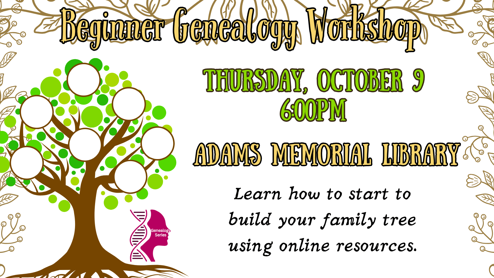 If you’ve done a DNA test, bring the results and learn how to integrate them into your family tree. At the end of the session you’ll walk away with a printed copy of the family tree you started during the class.