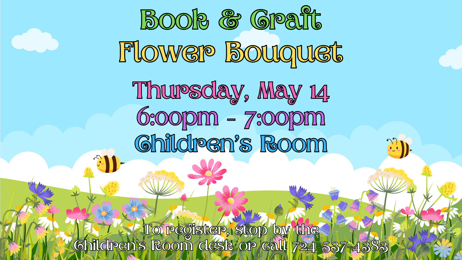 To register, call the Children’s Room at 724-537-4383 or stop by the Children’s Room desk.