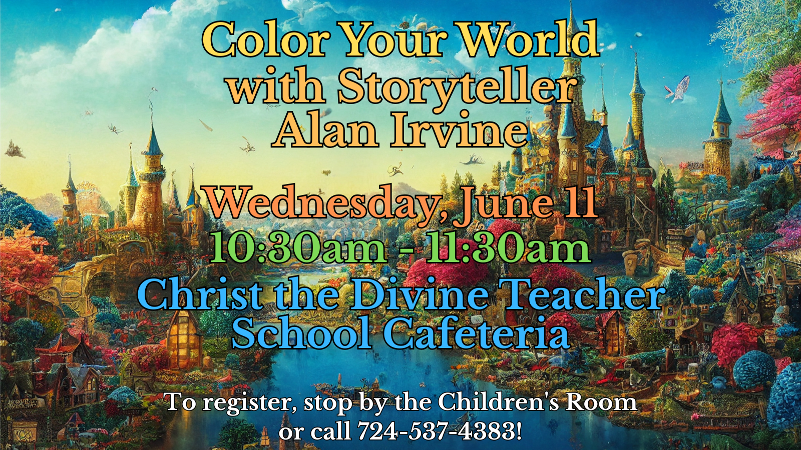 Did you know that colors in stories are important? From a red cloak to a pot of gold, storyteller Alan Irvine will share folk tales and legends from around the world.