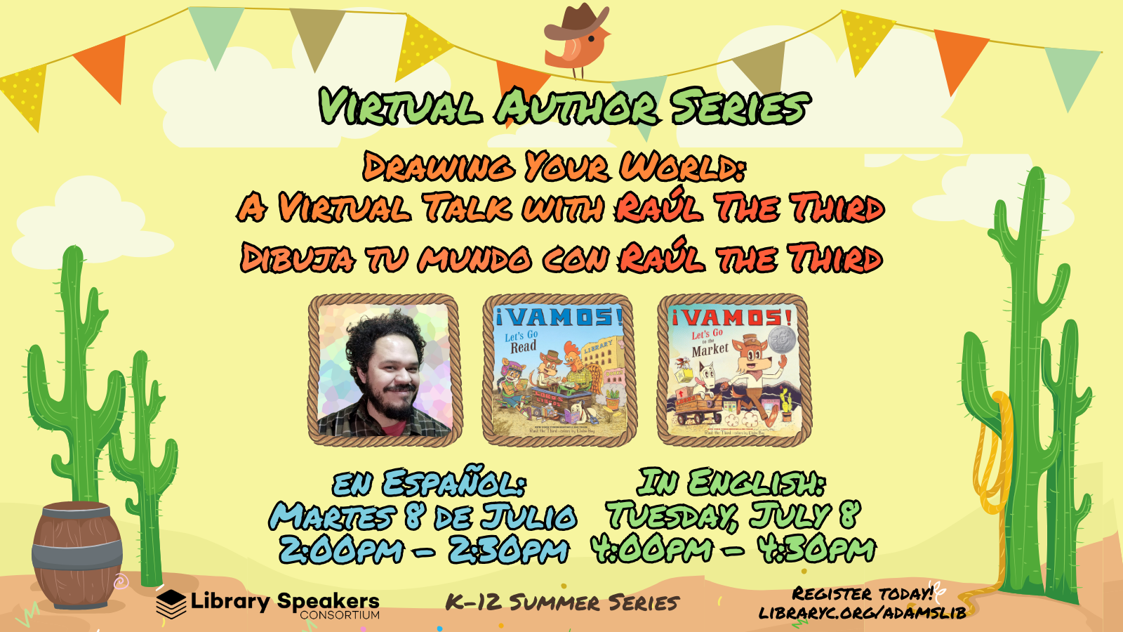 Join author and illustrator Raúl The Third as he discusses his book ¡Vamos! Let’s Go Read! which features Little Lobo and friends as they explore their library’s Libro Love Book Festival!