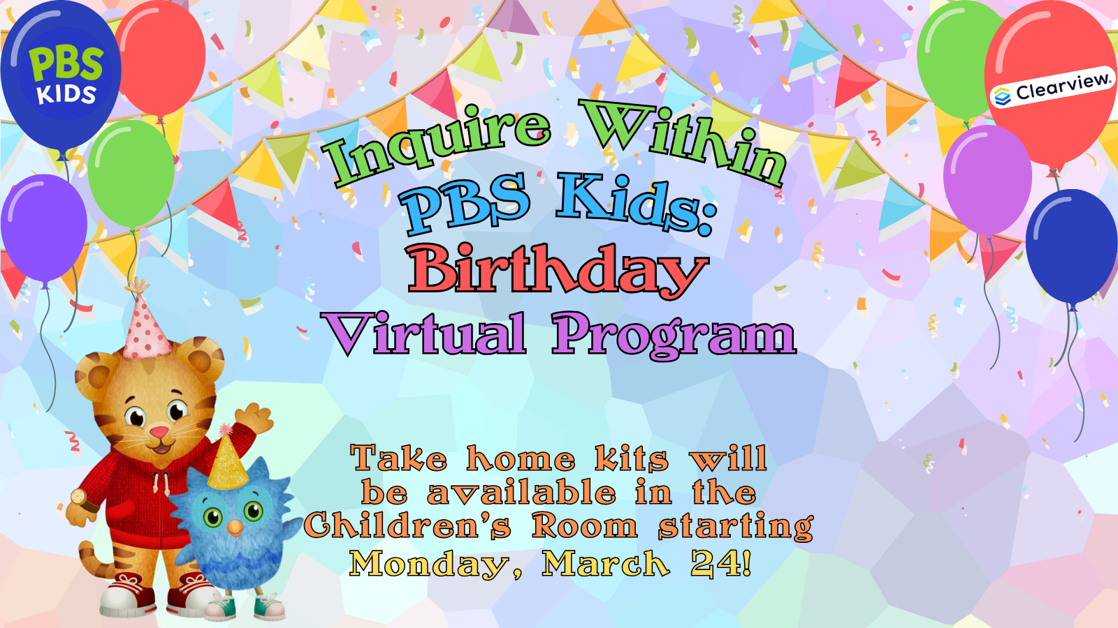 Thanks to our friends at WQED Education and Clearview Federal Credit Union, take home kits will be available in the Children’s Room starting Monday, March 24, so you can follow along on our website or social media!