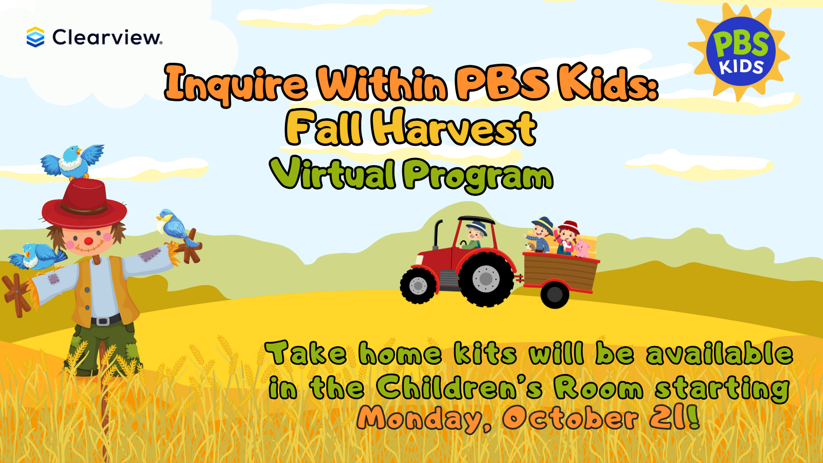 Thanks to our friends at WQED Education and Clearview Federal Credit Union, take home kits will be available in the Children’s Room starting Monday, October 21, so you can follow along on our website or social media! While supplies last!