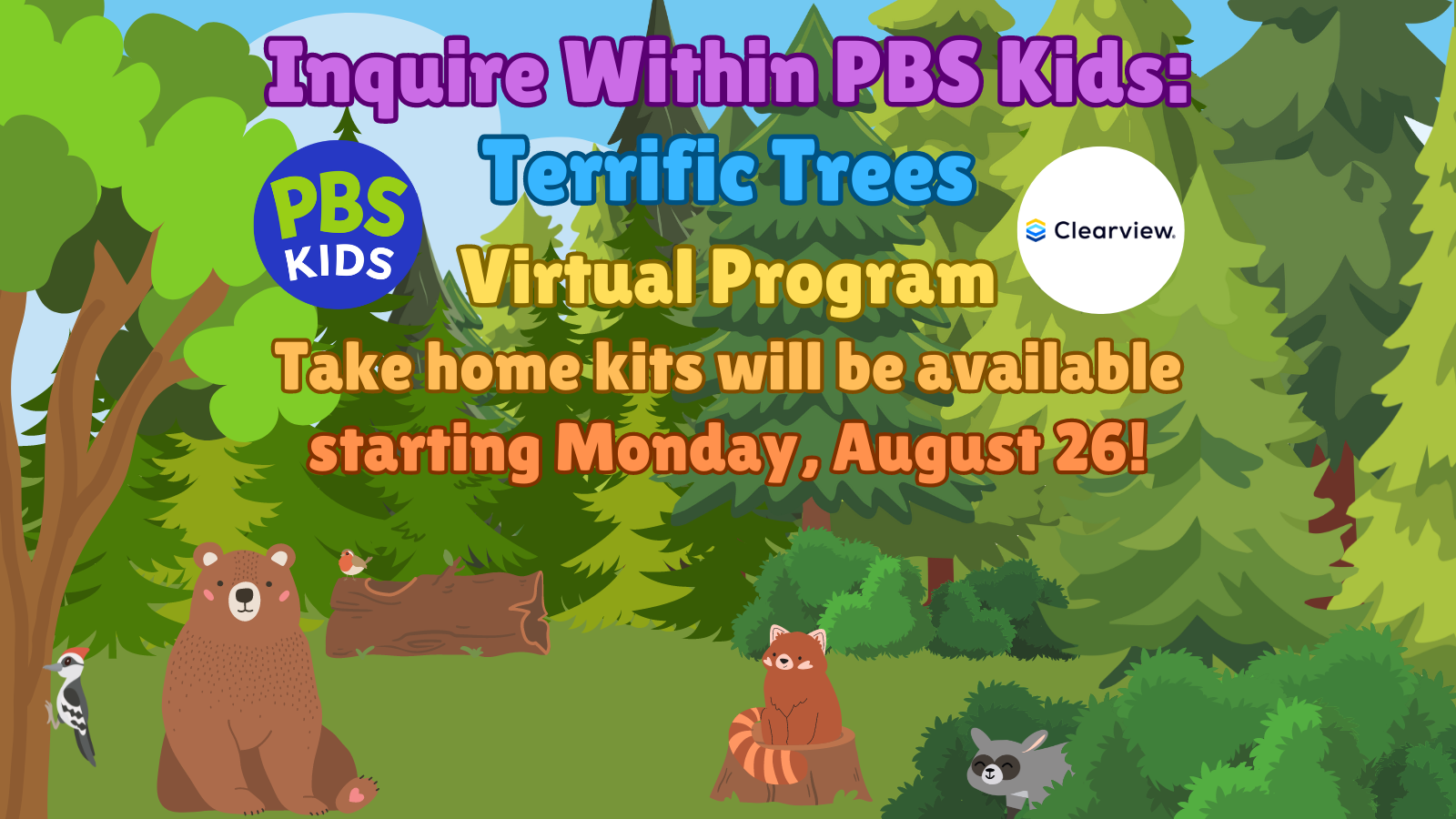 Thanks to our friends at WQED Education and Clearview Federal Credit Union, take home kits will be available in the Children’s Room starting Monday, August 26, so you can follow along on our website or social media! While supplies last!