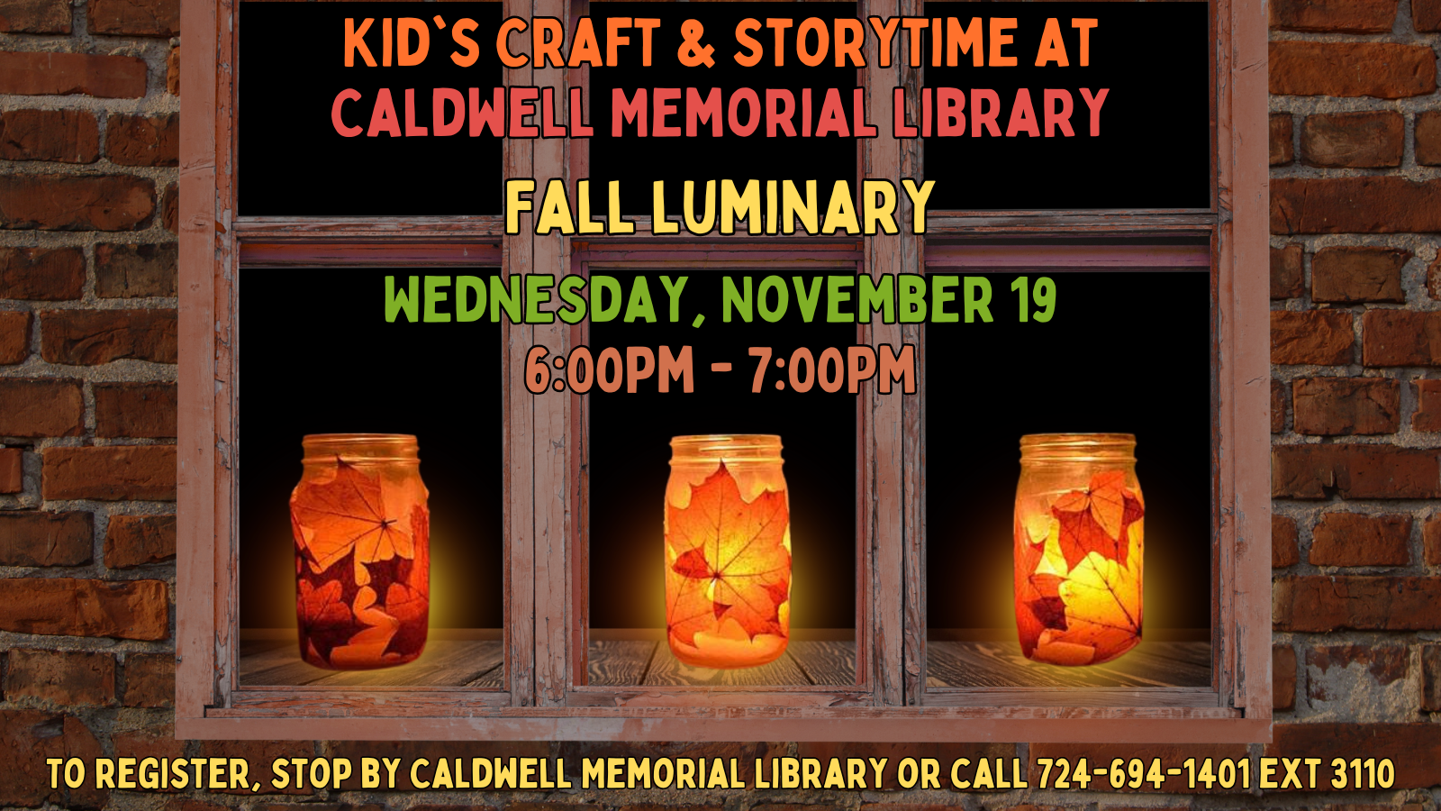 To register, stop by Caldwell Memorial Library or call 724-694-1401 ext. 3110!