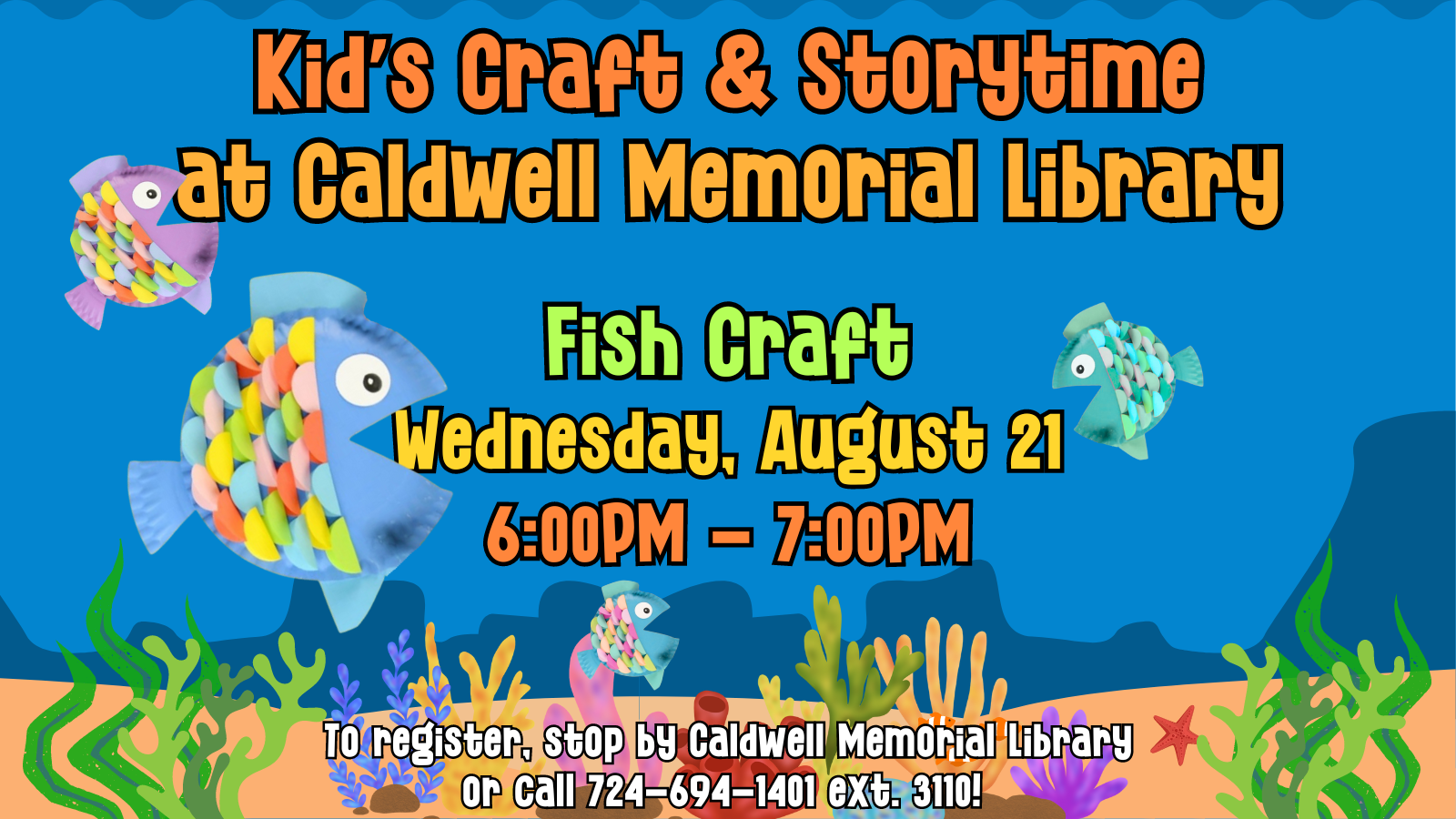 Swim on over to Caldwell Memorial Library and make a new fishy friend to take home while listening to some stories!