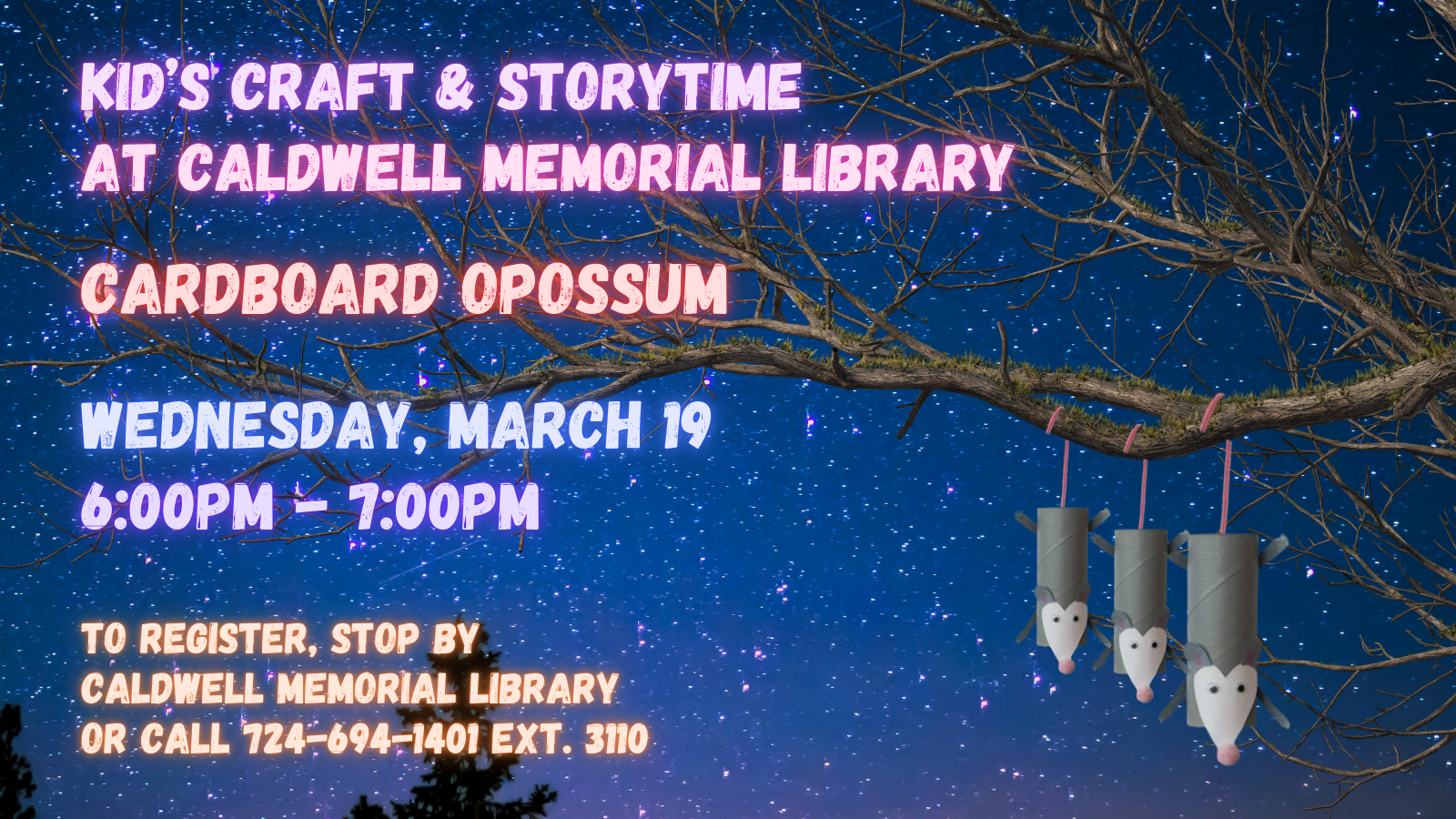 To register, stop by Caldwell Memorial Library or call 724-694-1401 ext. 3110!