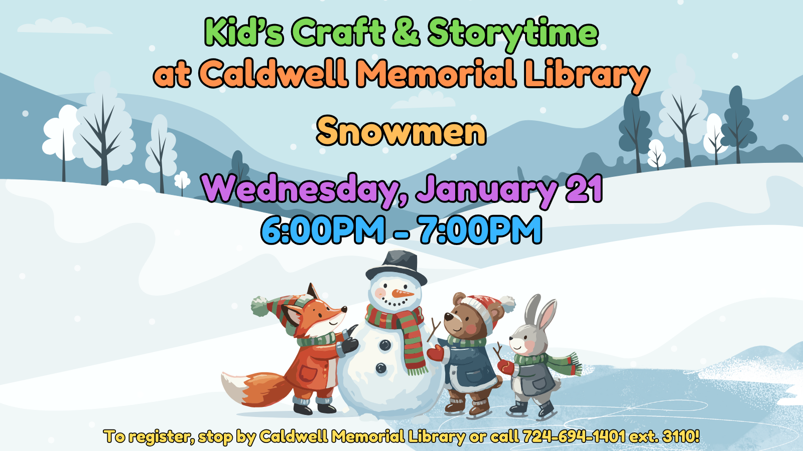 To register, stop by Caldwell Memorial Library or call 724-694-1401 ext. 3110!