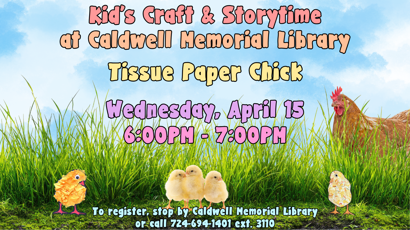 To register, stop by Caldwell Memorial Library or call 724-694-1401 ext. 3110!