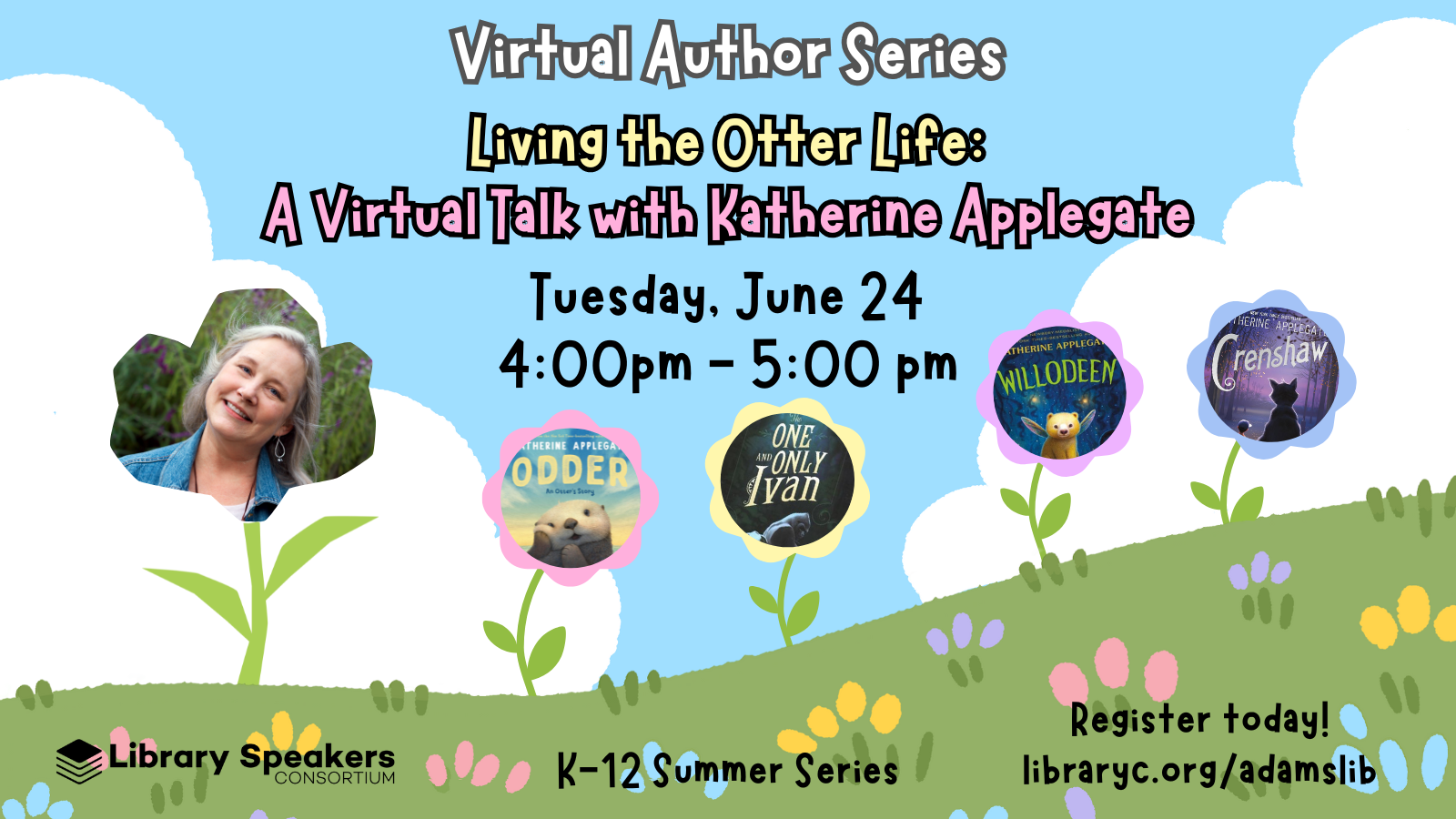 Join us as award-winning author and summer reading champion Katherine Applegate talks to viewers about her enthusiastically heartwarming novel in verse, Odder.