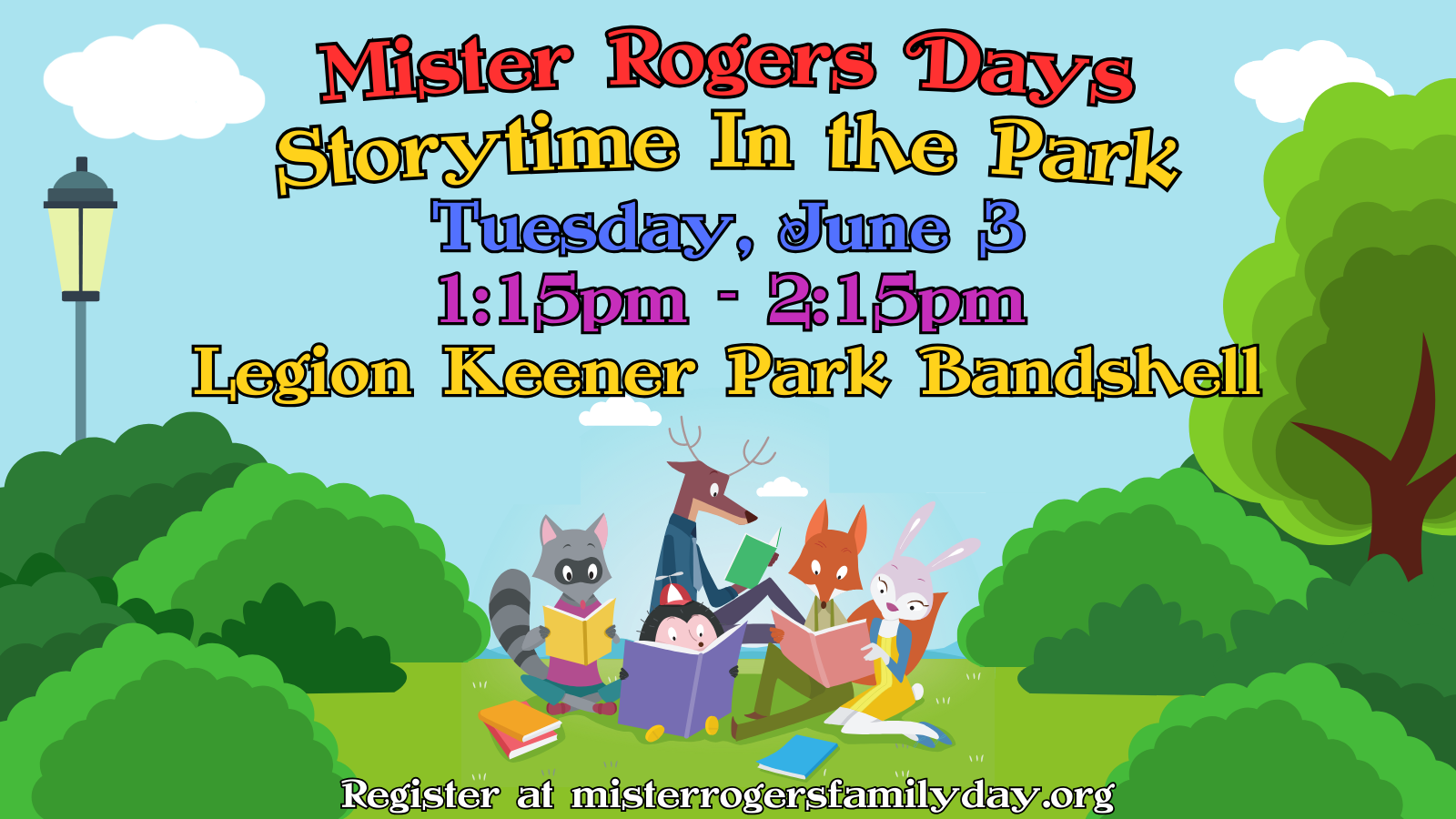 Miss Karen will be in Legion Keener Park for a Mister Rogers Family Days themed storytime!