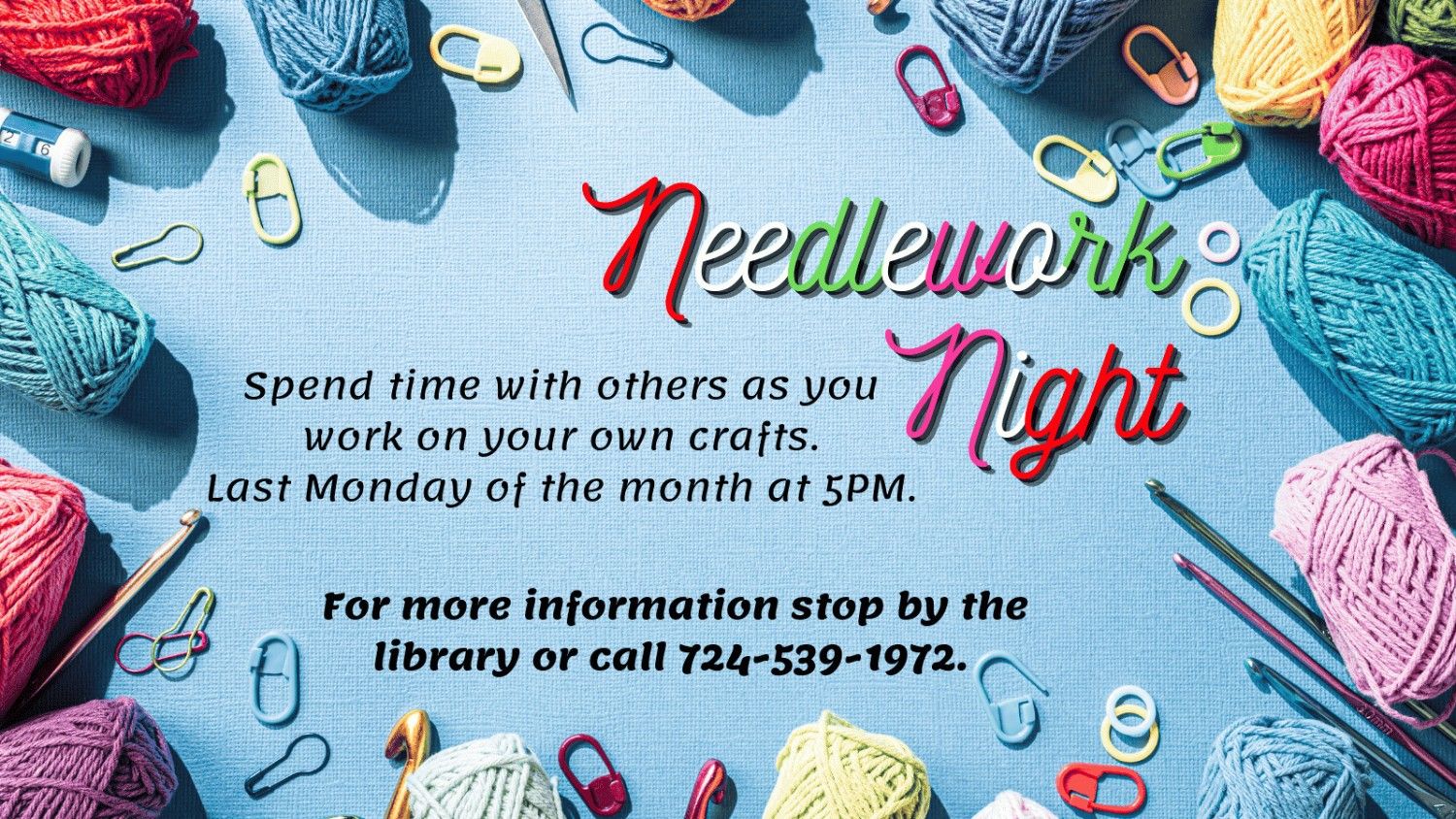 Come join others with a shared interest in needlework on the last Monday of the month! Share tips, techniques, and laughs while working on your own projects!