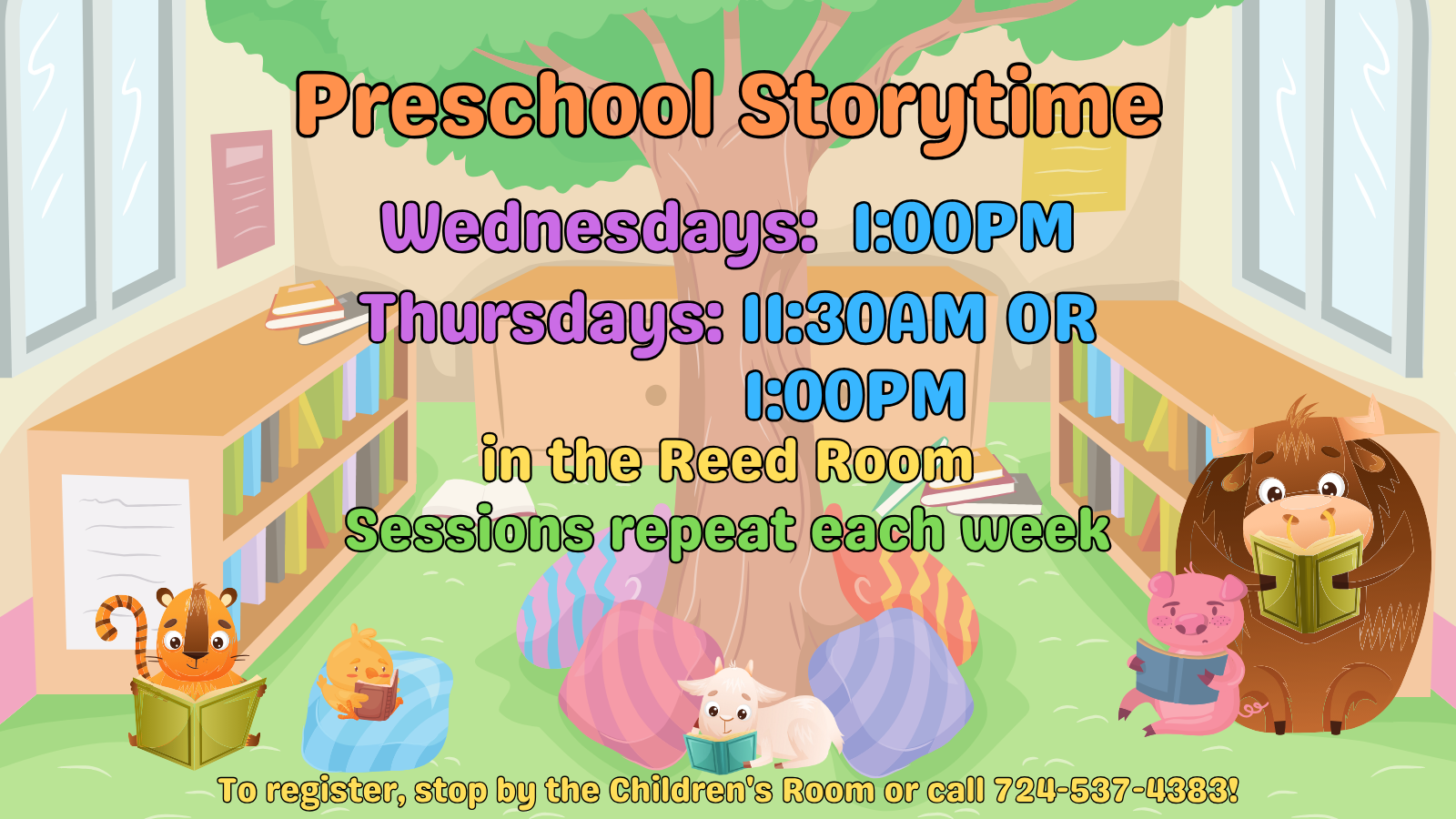 Please register by calling the Children’s Room at 724-537-4383 or stopping by the Children’s Room desk. Space may be limited!