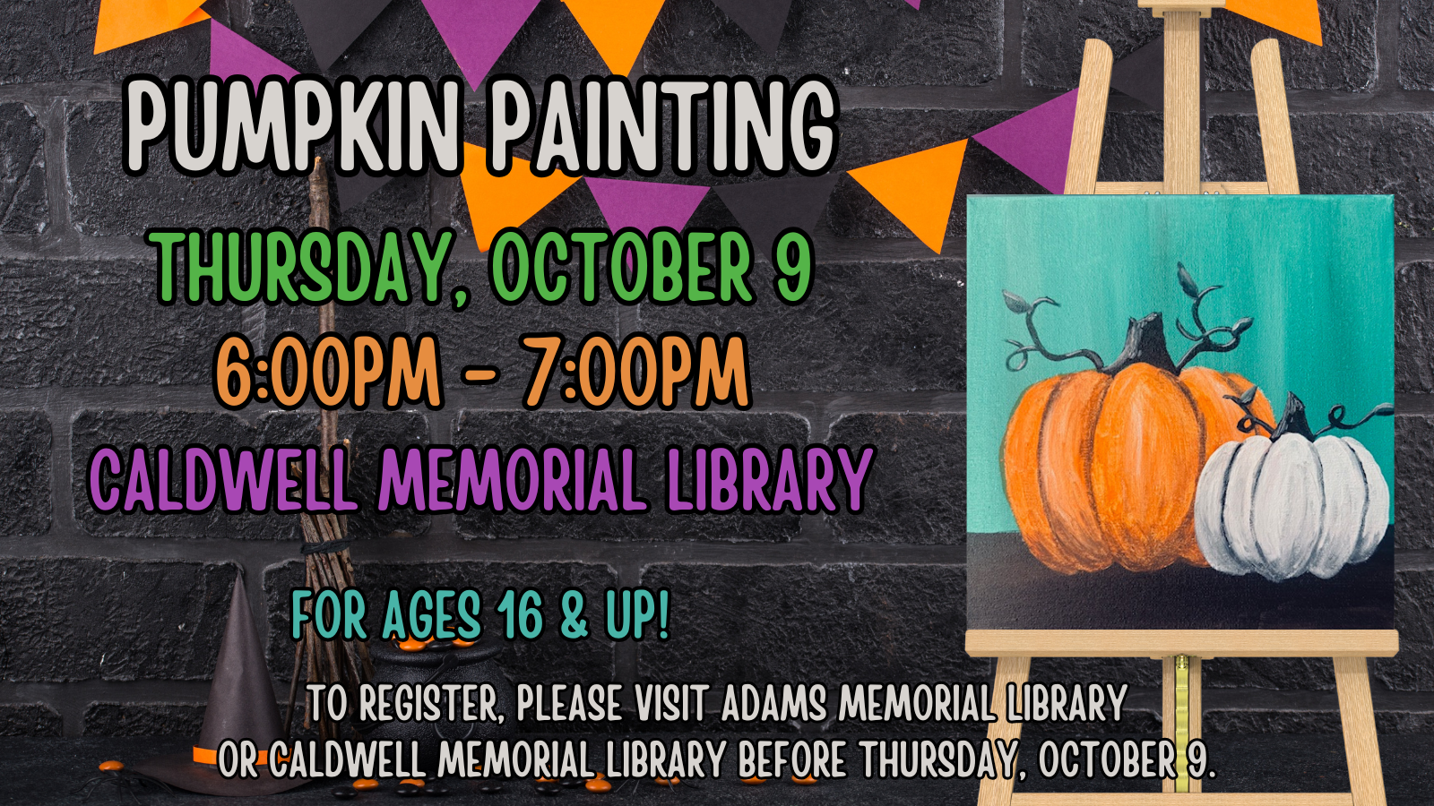 To sign up, please visit Adams Memorial Library or Caldwell Memorial Library before Thursday, October 9. Space is limited!