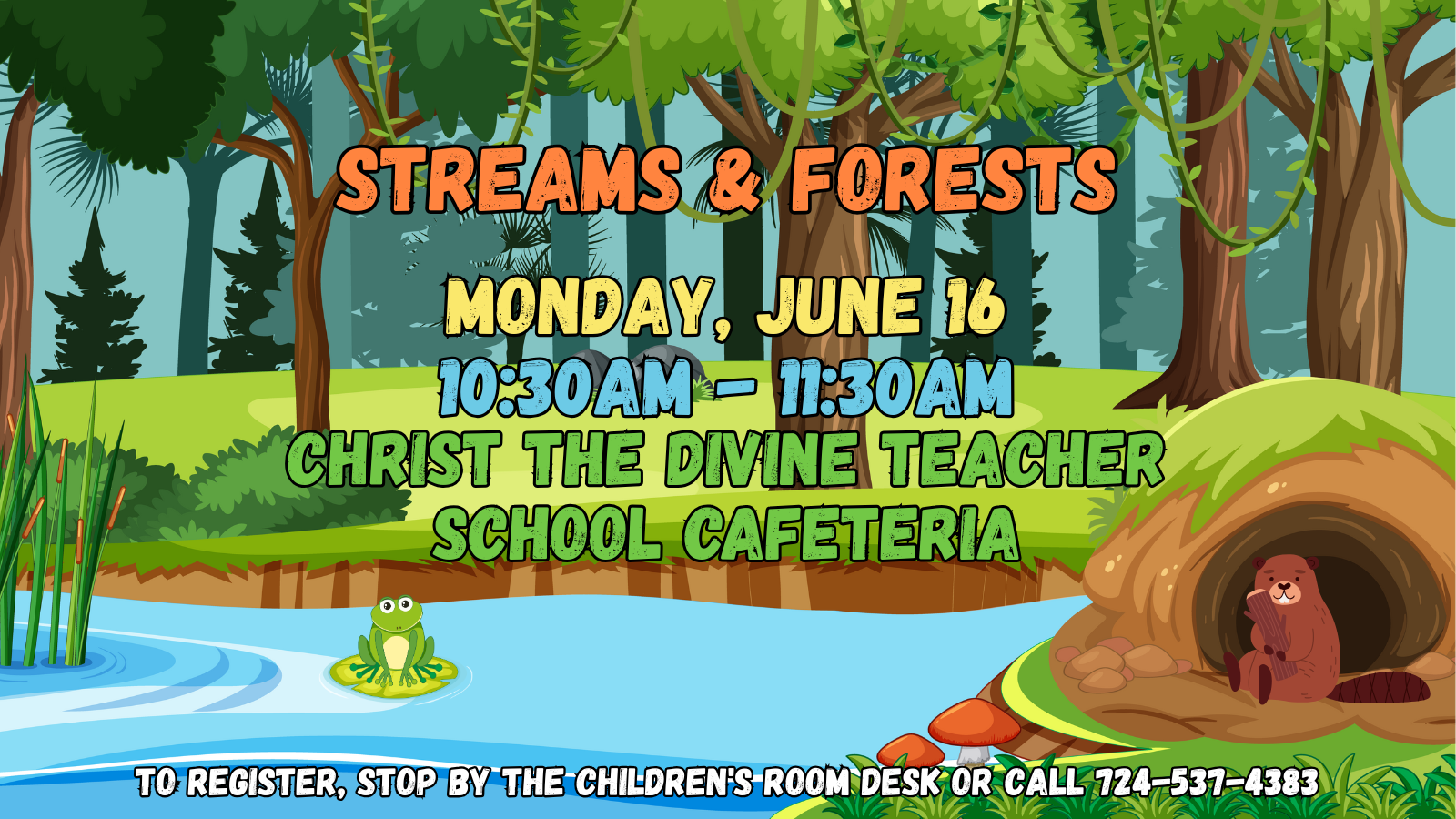 Please DO NOT contact CDT to register for this program! They are gracious enough to be our venue, but registration is ONLY through the CHILDREN’S ROOM!