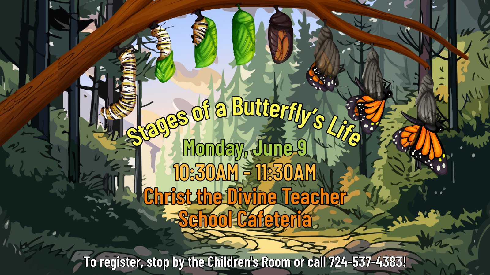 Please DO NOT contact CDT to register for this program! They are gracious enough to be our venue, but registration is ONLY through the CHILDREN’S ROOM!