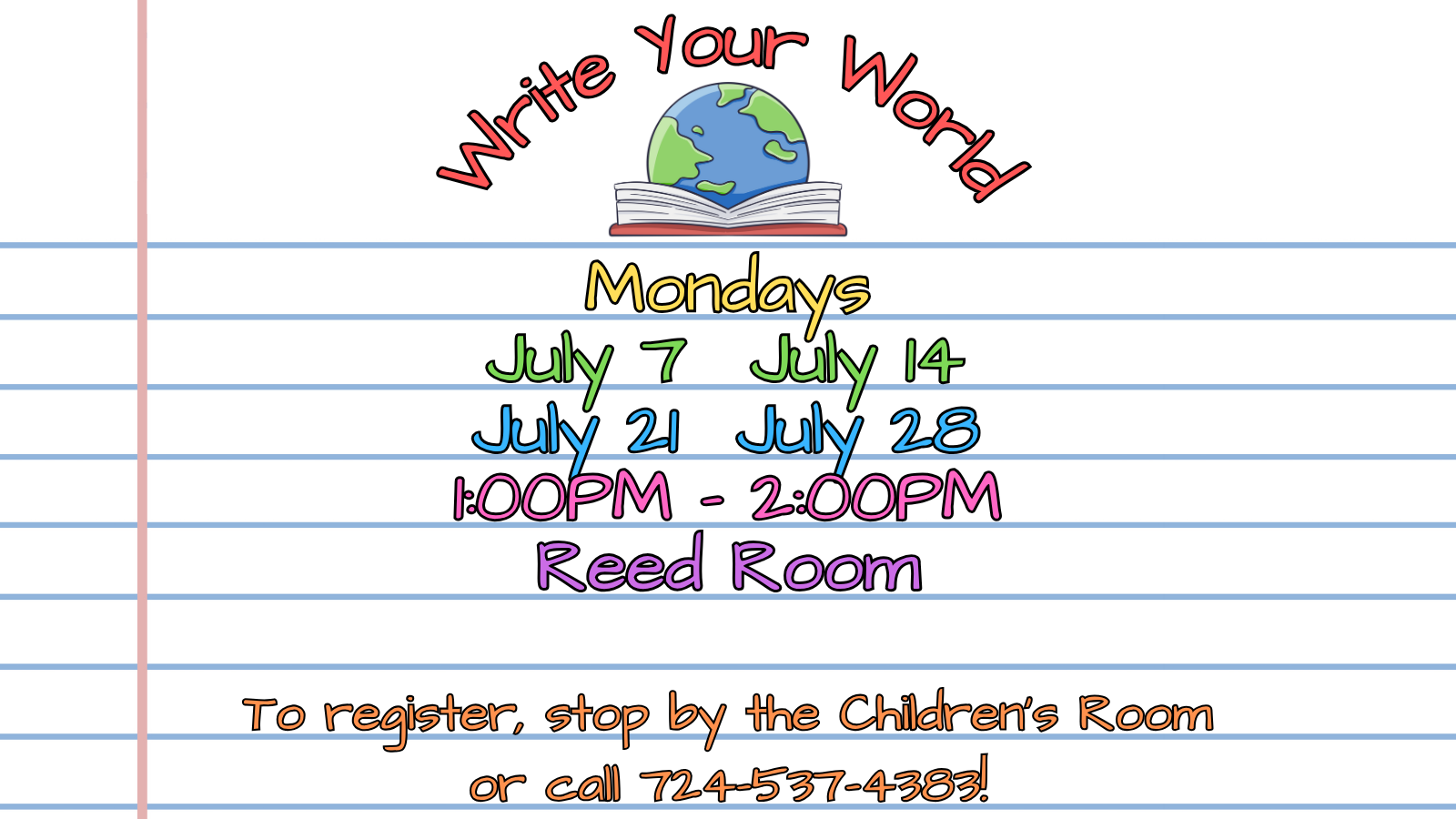 This program is held at AML and requires registration. To register, stop by the Children’s Room desk or call 724-537-4383.