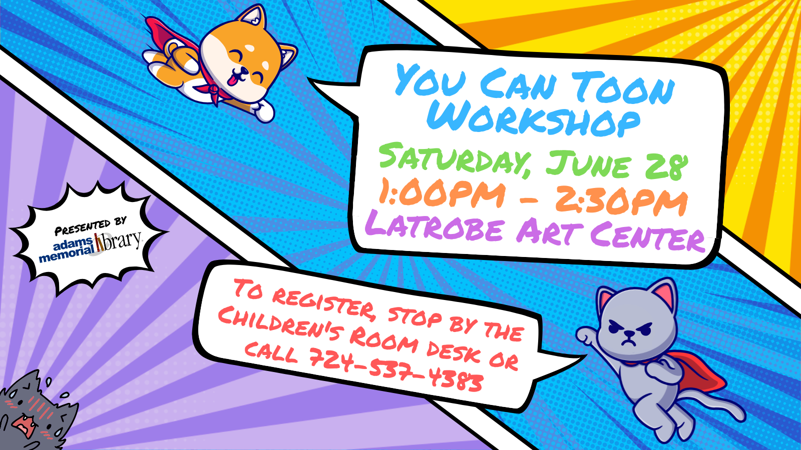 Please DO NOT contact the Latrobe Art Center to register for this program! They are gracious enough to be our venue, but registration is ONLY through the CHILDREN’S ROOM!