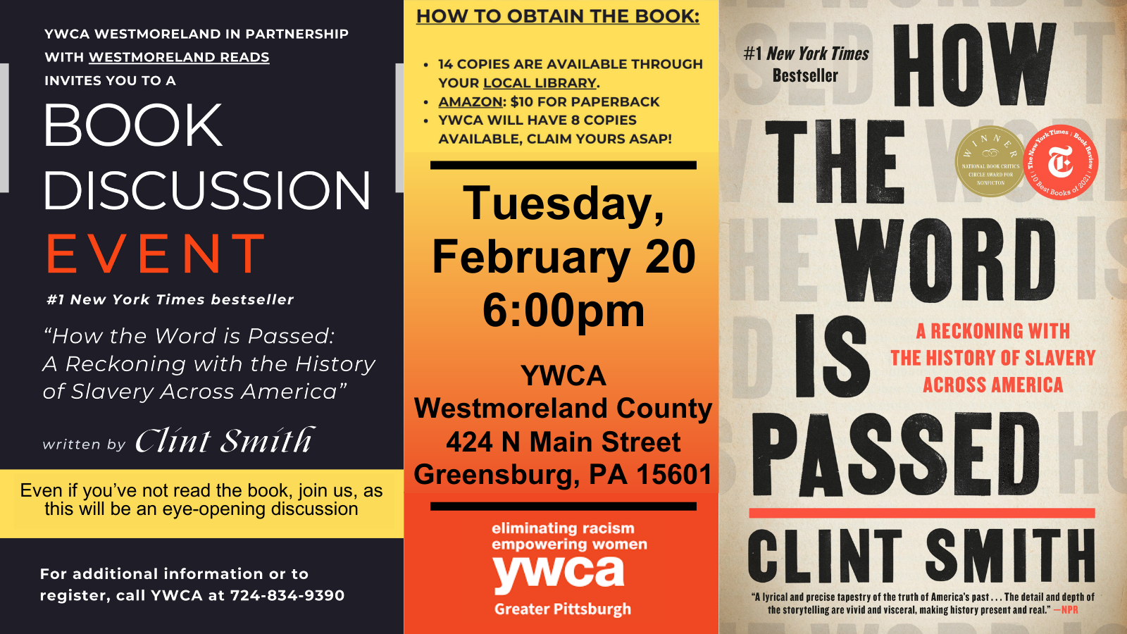 In partnership with the YWCA Westmoreland, Westmoreland Reads invites you to a book discussion! Featuring the New York Times bestseller The Word is Passed by Clint Smith.