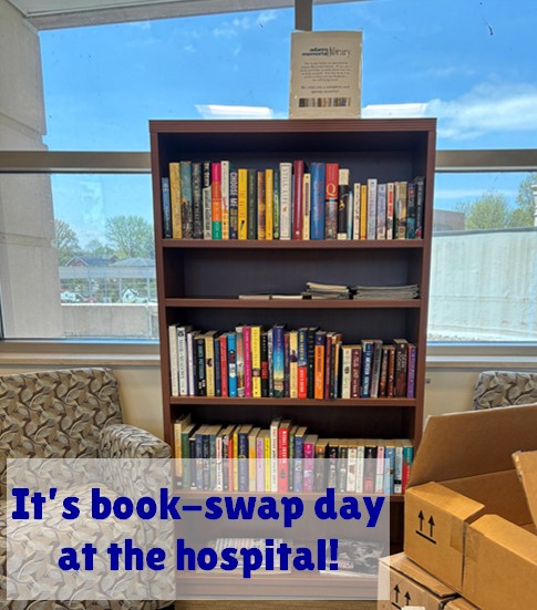 The library is proud to have been a years-long partner in providing a fresh selection of reading material every month or so. Patients, hospital faculty & staff, and folks visiting loved ones are welcome to browse the shelves and keep any book that catches their fancy.