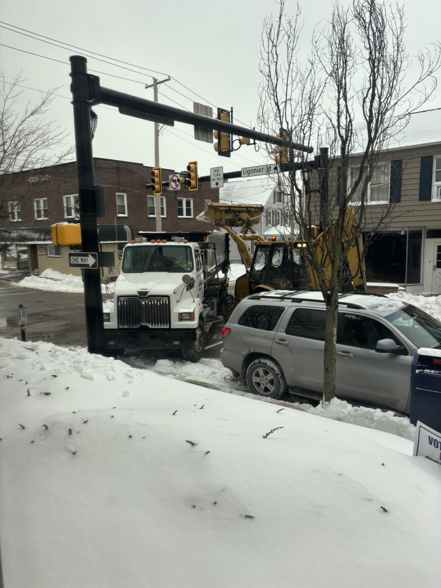 City crews are actively removing excess snow in front of the library using a backhoe and dump truck. Due to the volume of snowfall, not all snow can be cleared immediately. The alley and its steps are still in rough condition. If you are using curbside pickup, please do not enter the alley. Instead, pull up near the book drop on Chestnut Street and call the library from there.